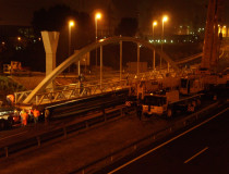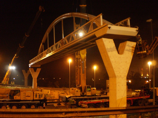 La obra viene requiriendo la limpieza de la red de caminos, con todos sus elementos accesorios, además de los pertinentes trabajos de movimientos de tierras marcados en el proyecto en cuanto a excavaciones de cimientos. También se ha procedido a micropilotar, según geometría y distancias definidas en planos. Una vez finalizados todos los micropilotes se procedió al soldado de la chapa de conexión y se ha ejecutado el encepado de las pilas que sirven de soporte a las estructuras.