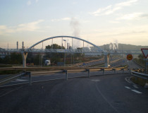 La construcción de la pasarela está requiriendo un muro de alzado variable perfectamente integrado en el entorno que le rodea. La ejecución de esta losa es necesaria para realizar una transición entre plataformas de diferente ancho, asociadas a la prolongación de la acera existente y el nuevo tramo definido de 2,5 metros de anchura.