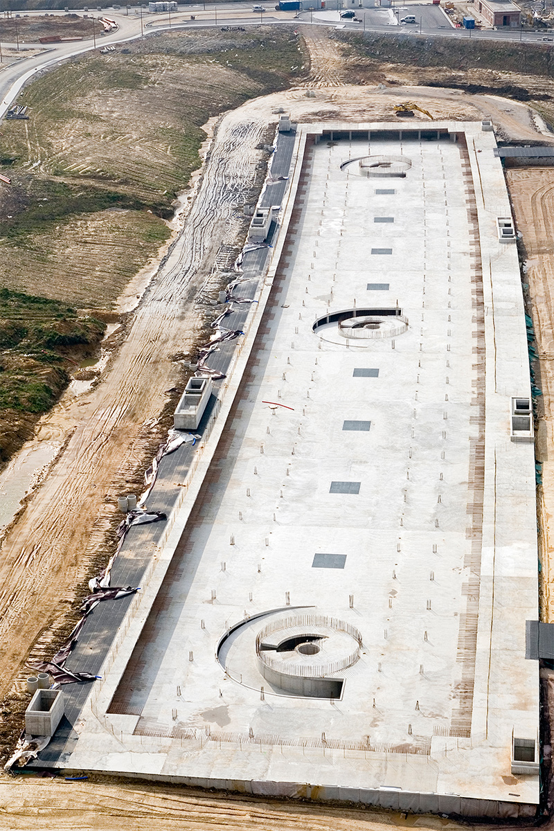 En la obra se realiza la parte de estructura perimetral del edificio, todas las cimentaciones y cuartos técnicos, y la solera inferior del aparcamiento. Además, se incluyen los elementos de drenaje necesarios para evitar subpresiones, así como todas las instalaciones de fontanería, saneamiento y drenaje que es necesario realizar en esta fase por quedar situados bajo la losa de cimentación o en el trasdós del muro perimetral.