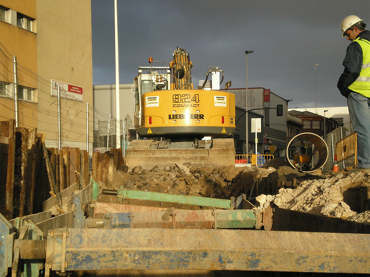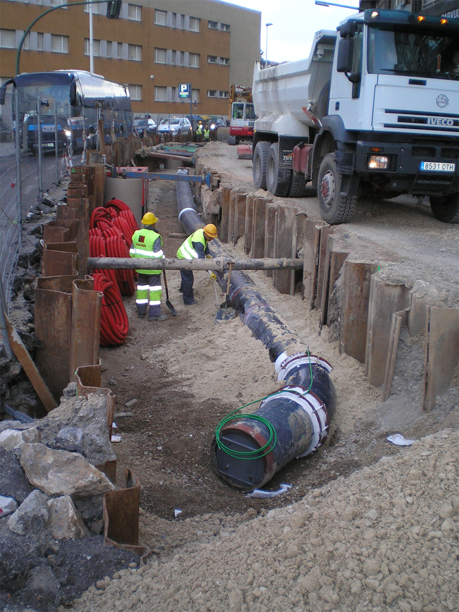 - Se ejecutó una hinca con camisa de chapa perdida electrosoldada de 33 m de longitud para paso de tubería Ø 800 mm bajo calzada de C/ Castilla.