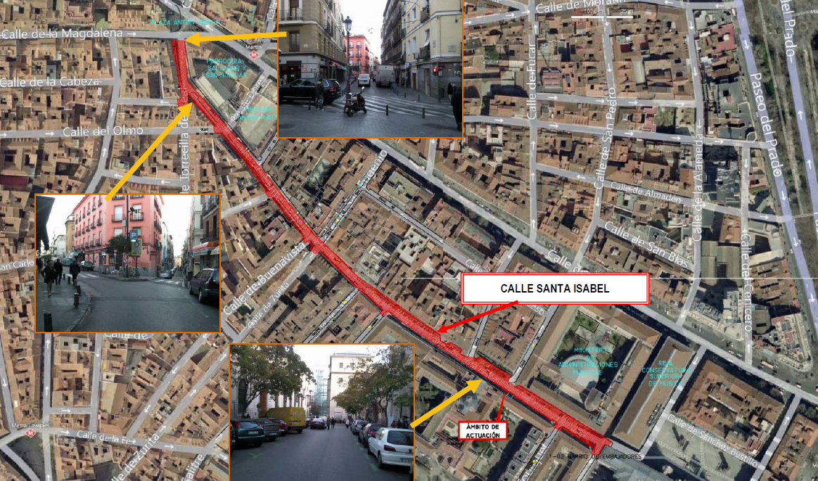 - La obra consiste en la rehabilitación de pavimentos, servicios y mobiliario de la Calle Santa Isabel, en el tramo comprendido entre la Plaza Antón Martín y la Calle de Santa Inés, en Madrid.