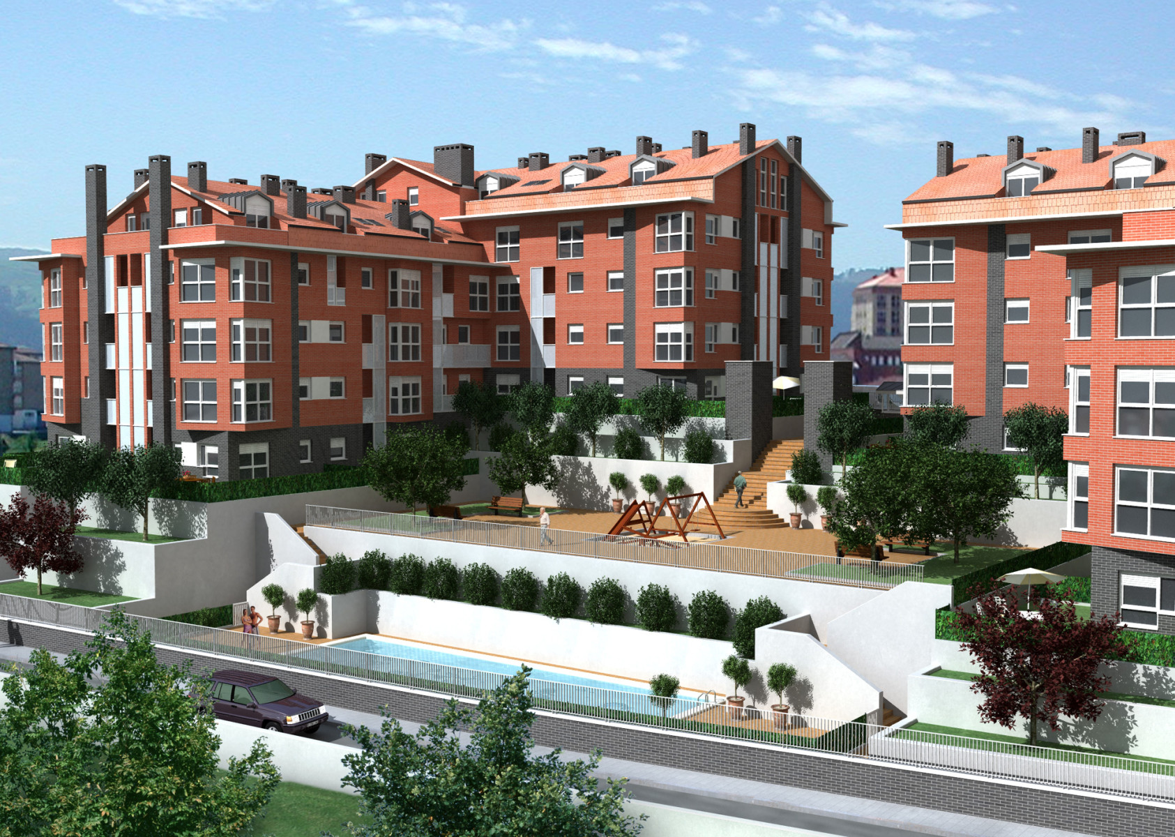 - Cerramiento fachada: Acabado en ladrillo cara-vista, en dos tonos. Cámara de aire con aislamiento térmico y tabique guarnecido de yeso.
