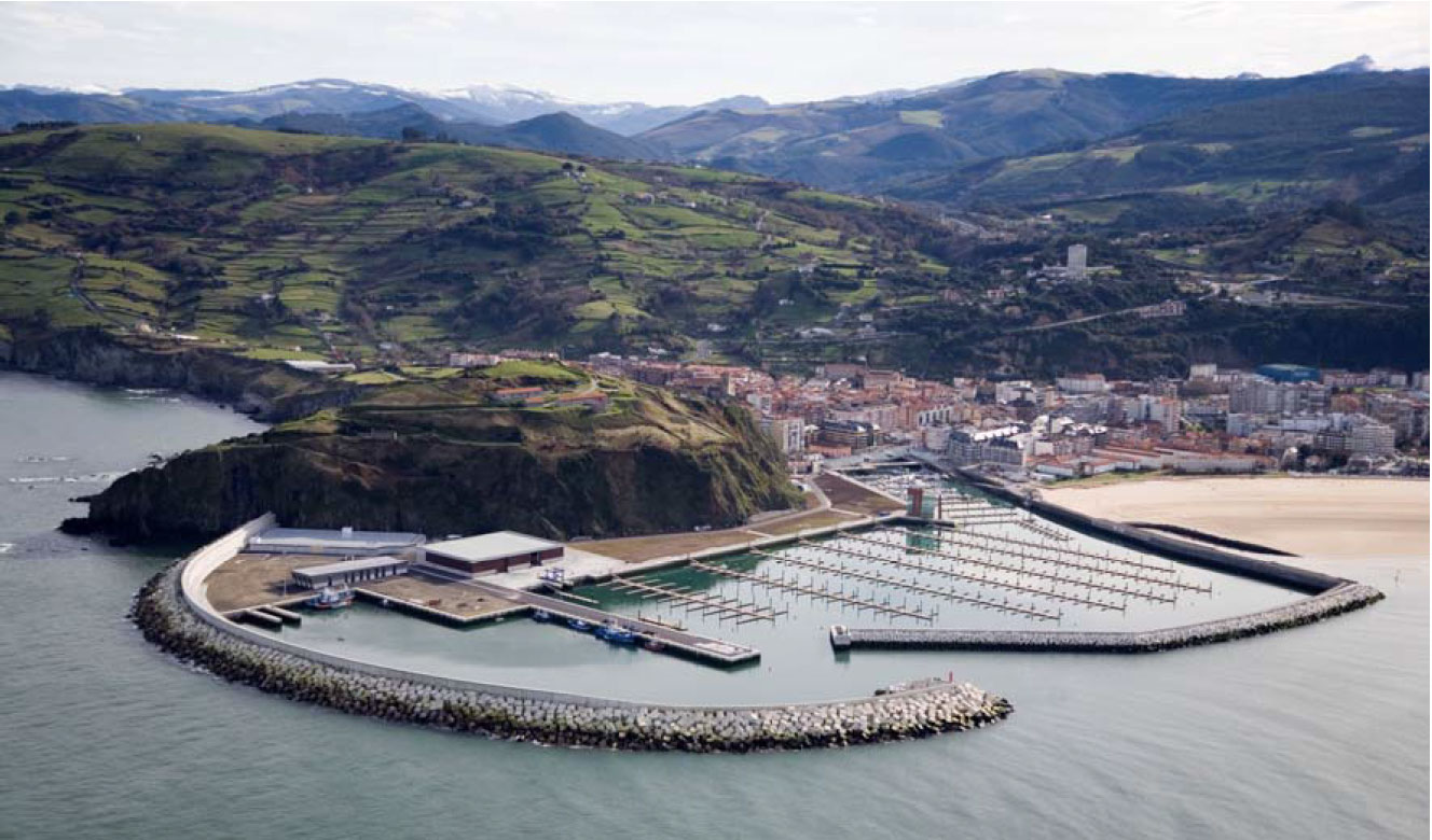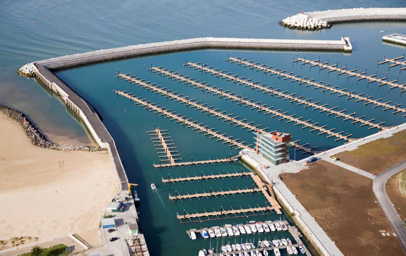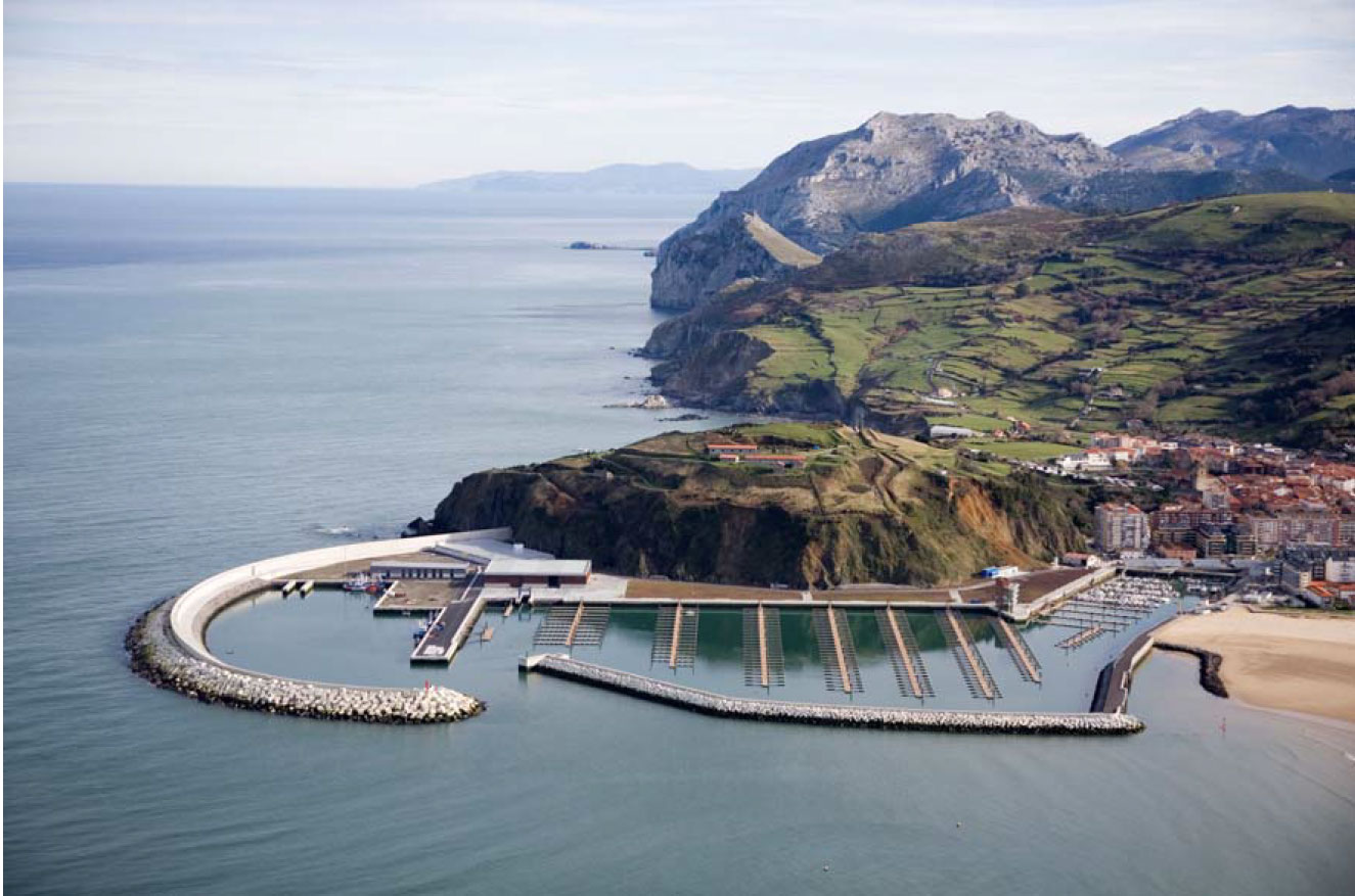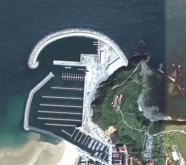 - El nuevo Puerto Deportivo de Laredo situado en la bahía de Santoña se proyecta al abrigo de un espigón de planta curva de algo más de 700 m de longitud en su zona norte. Este espigón defiende del oleaje a las tres dársenas a construir, dos de ellas deportivas y una pesquera, además del puerto actual.