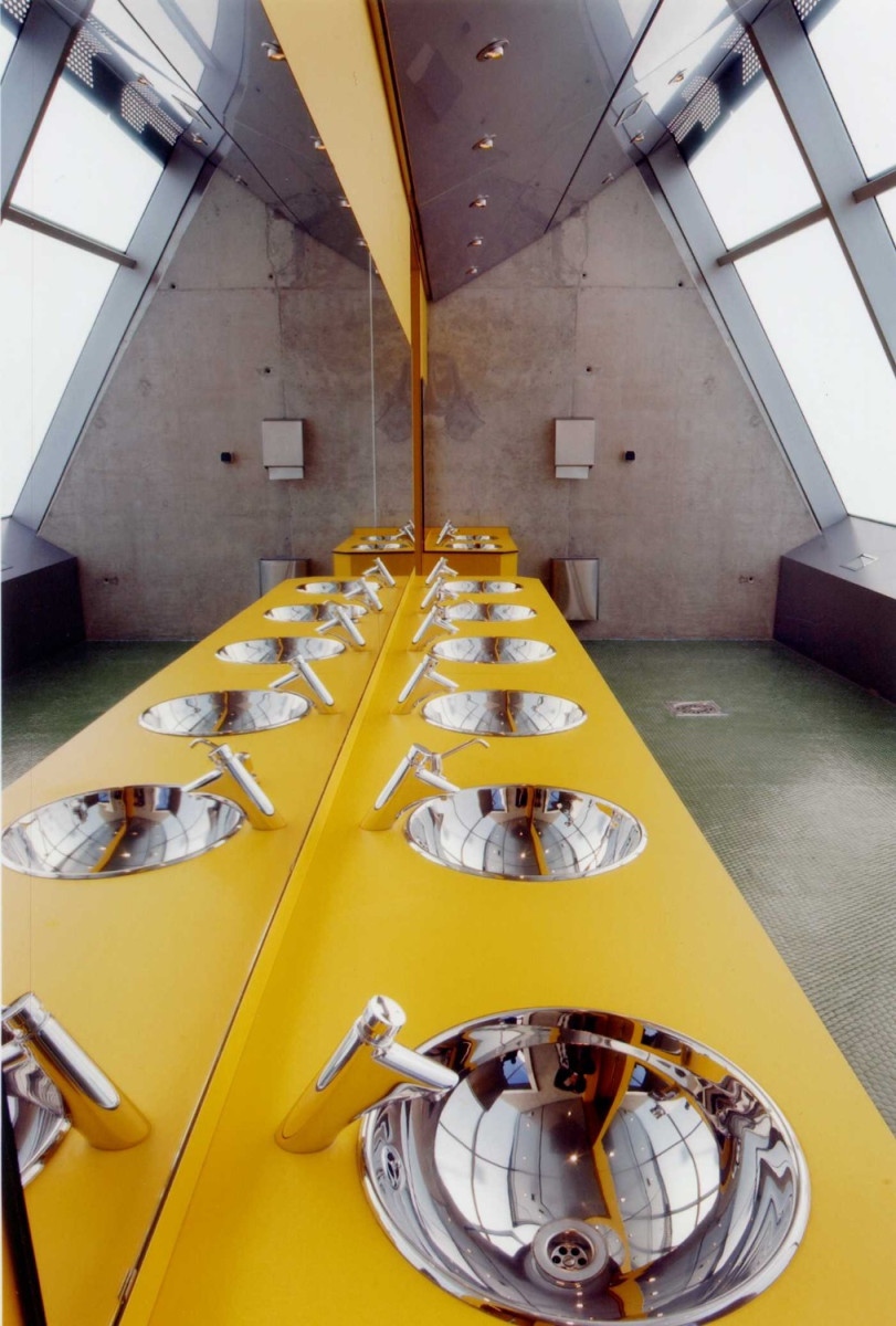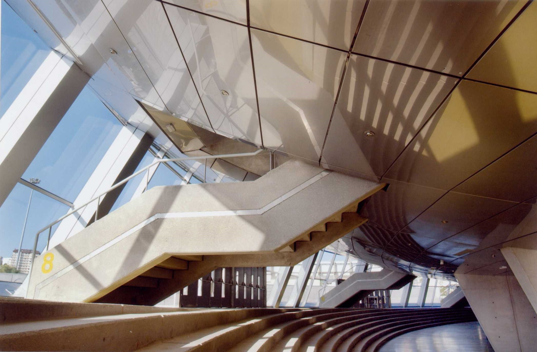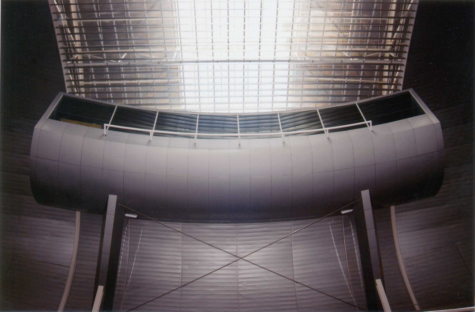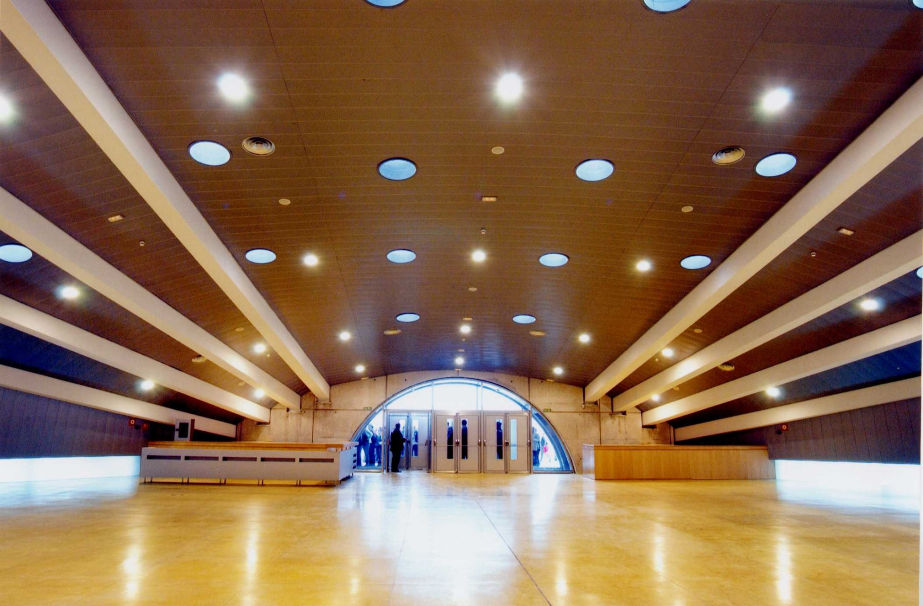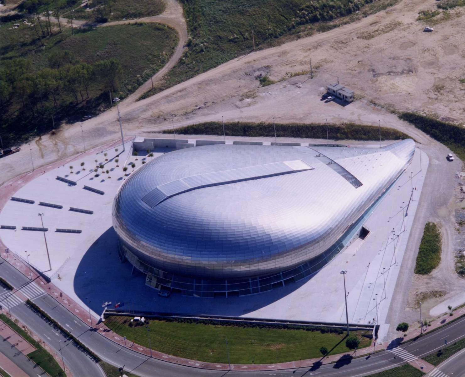 - Combina una estructura de hormigón y una cubierta de acero inoxidable con una forma recordando la de una ballena.
