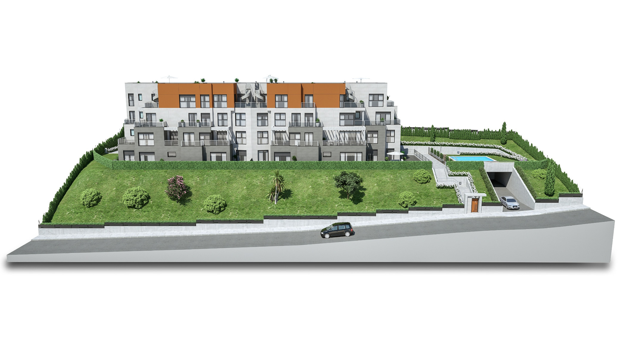 - Construcción de edificio de 16 viviendas de 2, 3 y 4 dormitorios con jardín y terrazas, desarrollado en planta de sótano, dotada de 25 plazas de aparcamiento, 16 trasteros, cuarto de instalaciones para aerotermia y un aljibe para incendios; y cuatro plantas sobre rasante, con dos portales y dos núcleos de comunicación vertical, distribuidas a razón de cuatro viviendas por planta.