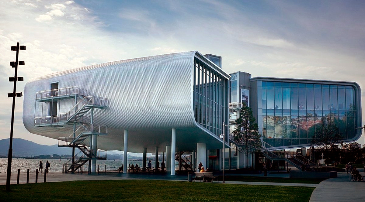 - El edificio permite disfrutar de las vistas de la bahía, dado que comienza a la altura de las copas de los árboles, y no supera la altura de dichas copas. La planta baja es transparente, y tiene pilares finos a modo de troncos de árboles, generando una continuidad conceptual y cromática.