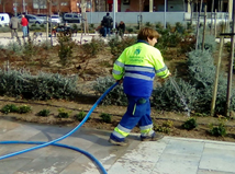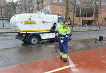 - Limpieza manual o con sopladora eléctrica, con una potencia sonora de hasta 90 dB, de las pistas deportivas y acerados de los centros educativos, al menos una vez al mes, consistente en barrido de arenas o tierras existentes y extendido de las mismas en las zonas terrizas, con el fin de garantizar la permeabilidad del hormigón poroso de las pistas y evitar accidentes por deslizamiento al contener arenas sueltas en la superficie.