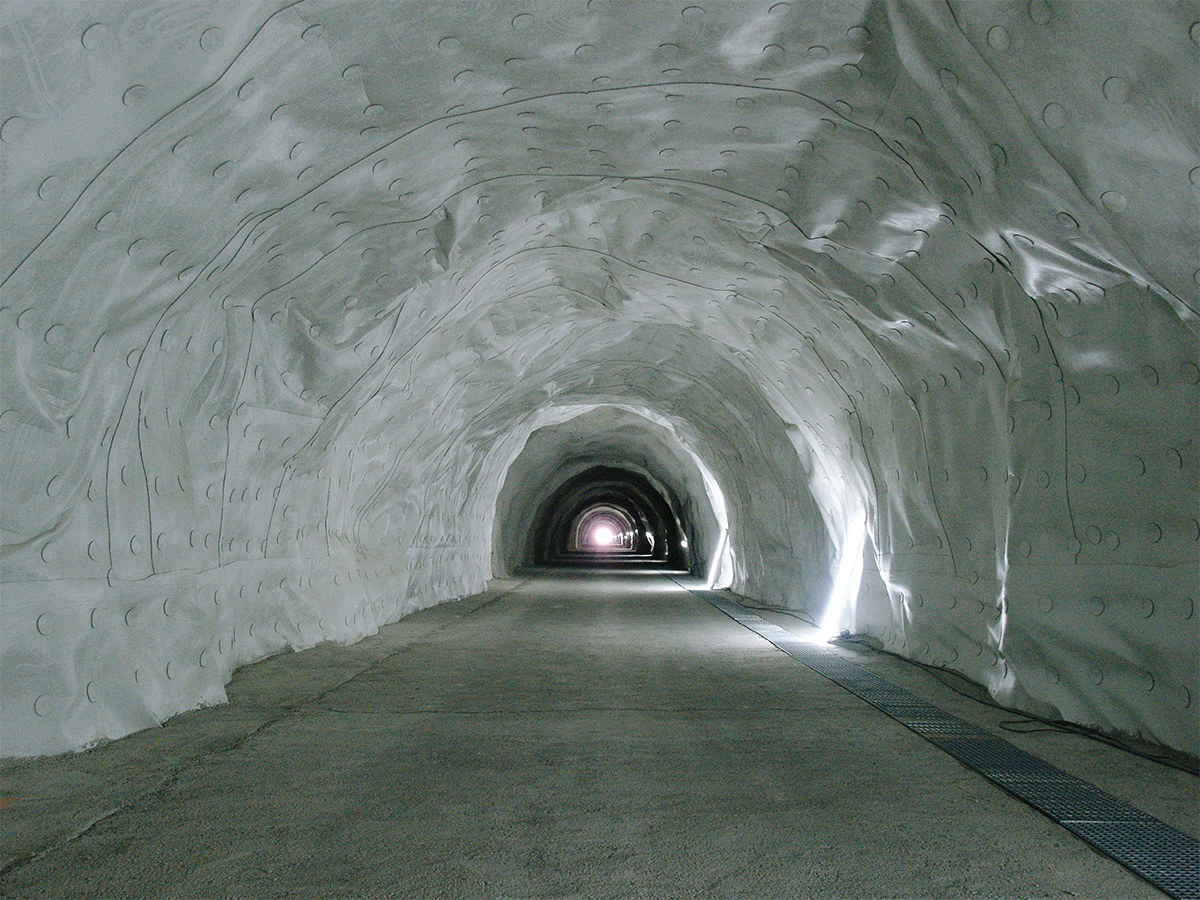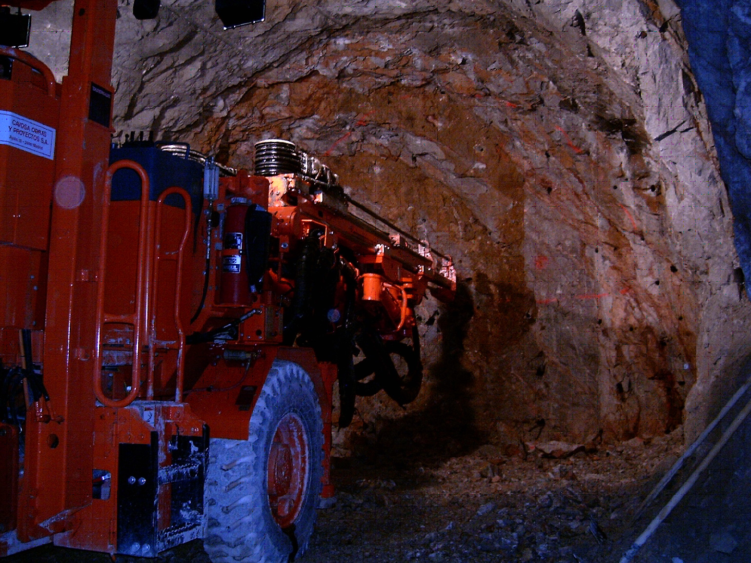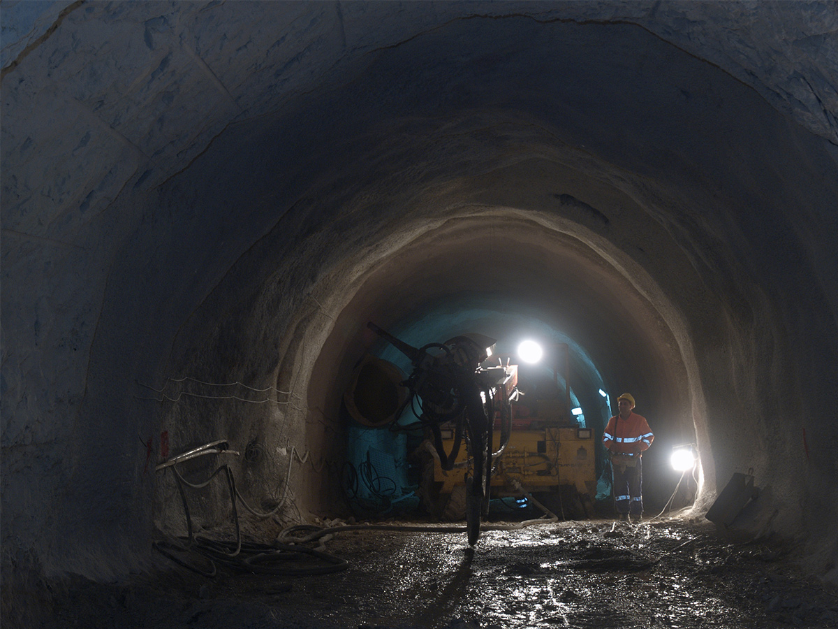 - En el conjunto de dichas obras se incluyó la ejecución de un túnel de 1.600 m de longitud con ancho de 5,50 m y altura de 4,50 m, con disposición de 3 secciones tipo de sostenimiento: la primera con revestimiento de hormigón proyectado; la 2ªmediante bulonado y posterior proyección de hormigón con fibras; la 3ª mediante chapa Bernold, cuadro metálico TH-21 y hormigón proyectado.